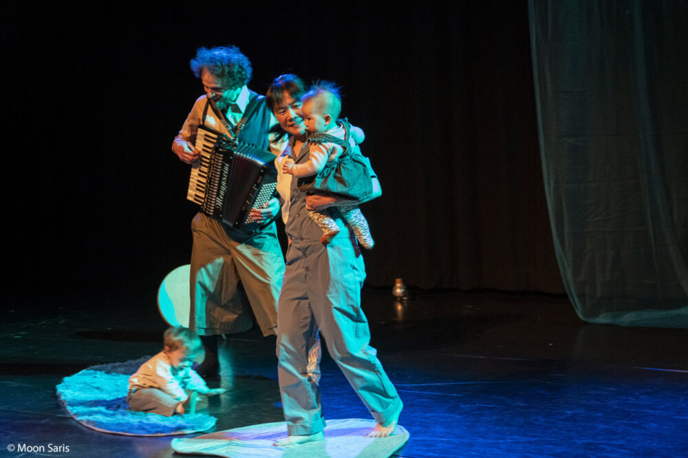 In de theater- dans en muziekvoorstelling UMI ontvouwt zich een zachte wereld van kleur, klank en beweging, waarin kruipende lichamen en grote ogen het tempo bepalen. Makiko Ito beweegt tussen de kinderen alsof zij deel is van hun spel, terwijl de muziek ademt, wiegt en soms onverwacht oplicht. Tapijten worden zeeën, knieën worden bergen en een lift door de lucht voelt als een eerste vlucht. Alles mag, niets moet: ieder kind wordt gezien in zijn aarzeling of durf, in zijn nee en zijn ja. Zo ontstaat een intieme, bijna tijdloze ervaring waarin de wereld even klein en veilig voelt.