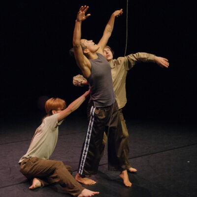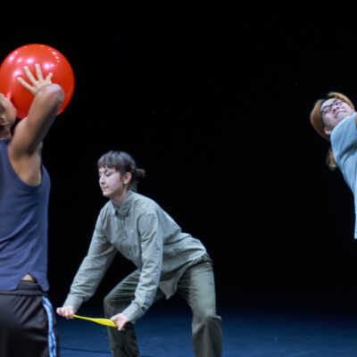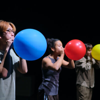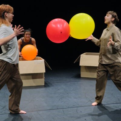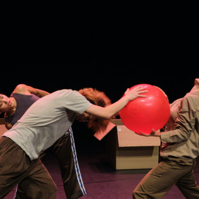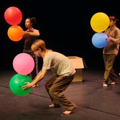 Three dancers meet on the stage. At first, with shyness and at a distance – until the colourful balloons appear and everything starts to move.