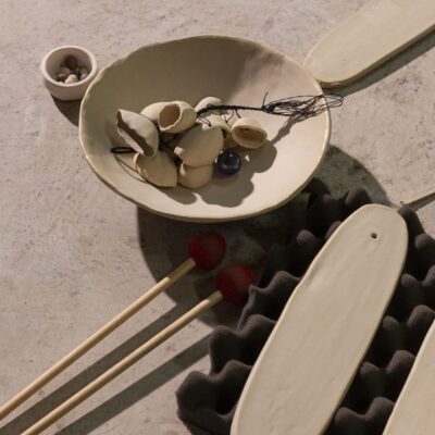 Specially for the production OKAPI, Dutch artist Gemma Luz Bosch designed clay sculptures that make sound and can be played. These sculptures represent fixed points in a natural clay landscape that constantly changes as the performers – and the audience – perform. Children are invited to listen, watch and join in the movement, actively taking part in this act of creation.