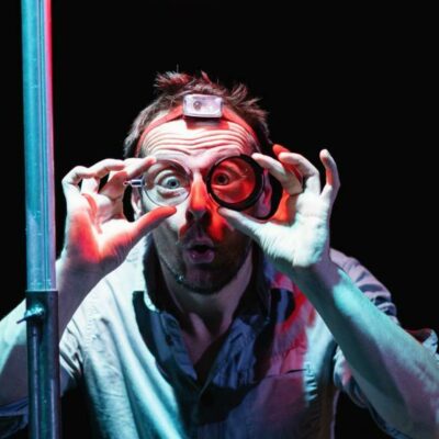 In the visual, musical show ZOO(I) , nothing is what it seems. In an enchanting interplay of light and shadow, ordinary things become extraordinary. On a big mobile full of projections, lenses and lamps, a new world of spooks and creatures arises. Two artists lead us on an exploration through a verdant jungle. Together, we play with what appears and disappears.